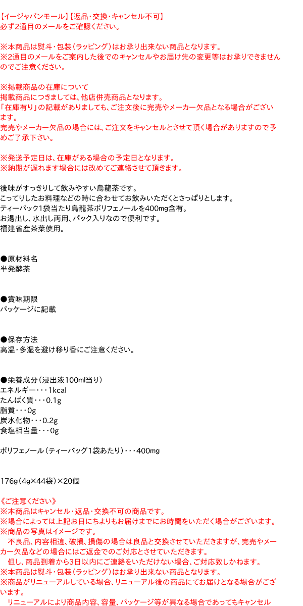【送料無料】★まとめ買い★ 丸幸 黒烏龍茶ティーバッグ 4g×44 ×20個【イージャパンモール】