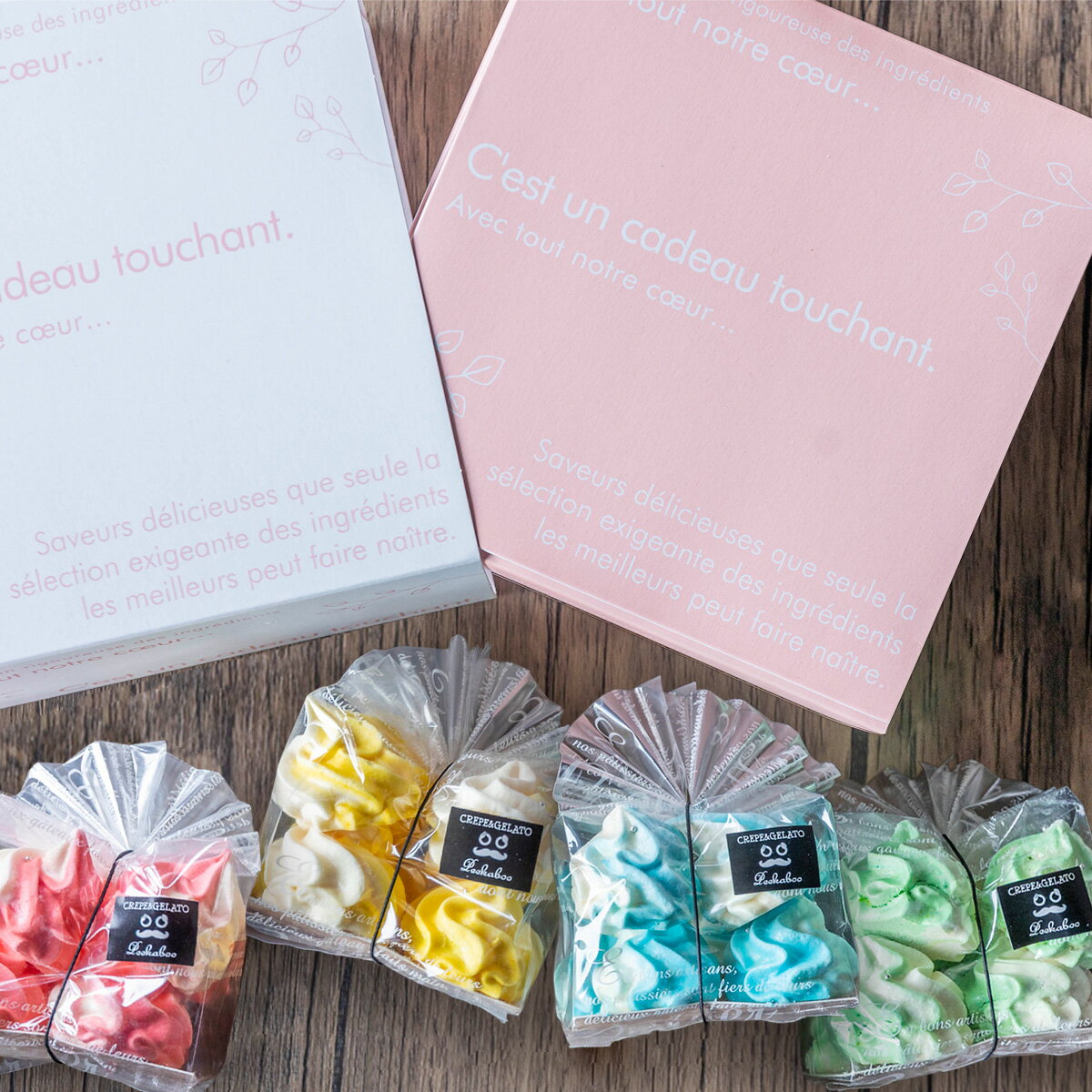名称カラフルメレンゲクッキー!!4袋BOX 内容量1袋8個×4袋BOX入りセット 原材料砂糖,卵,コンスターチ、着色料(赤色102号、青色1号、黄色4号) 消費期限/賞味期限 30日保存方法常温 製造者CREPE&GELATO Peekaboo 販売者CREPE&GELATO Peekaboo 配送方法ヤマト運輸 / 常温 備考※配送時の振動等による、部品のはがれや、表面のひび割れ破損等稀にこのようなことが起こる場合がございますので商品の特性上、あらかじめご理解とご了承の上ご注文お願い致します。