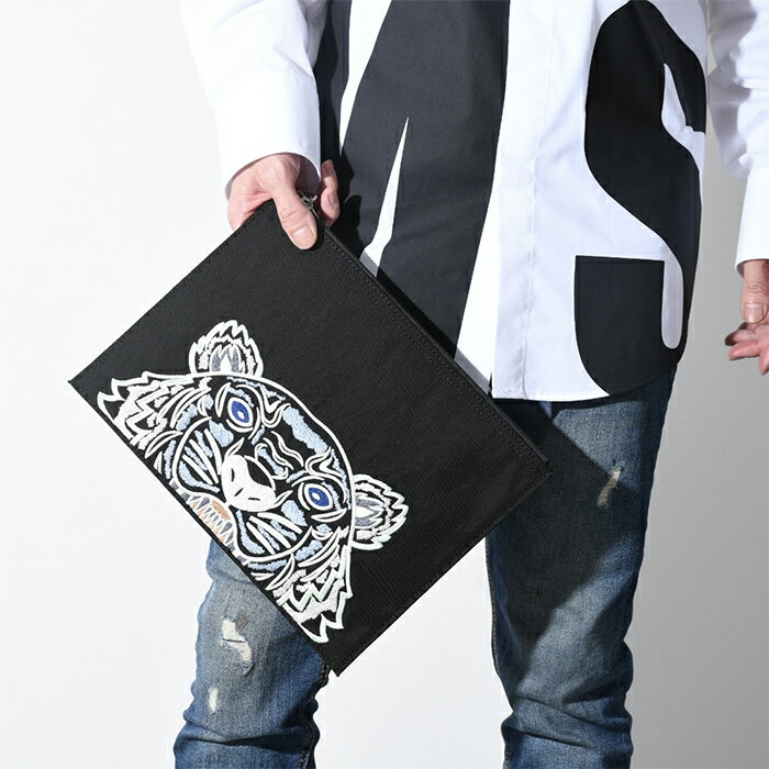 KENZO ケンゾー TIGER クラッチ BAG クラッチバッグ FA65PM302F20 定番 トラ ロゴ BLACK ブラック メンズ ポーチ 虎 ストラップ付 ポリエステル ギフト プレゼント オススメ