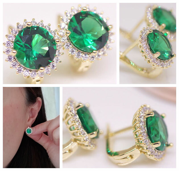 18K RGP ゴールド ダイヤ CZ グリーン フラワー ピアス gp5549 ご褒美 感謝 記念 お祝い