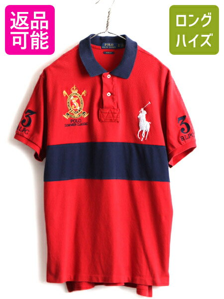 ビッグポニー 大きいサイズ XL ■ POLO ポロ ラルフローレン 鹿の子 半袖 ポロシャツ ( メンズ ) 古着 ラガーシャツ タイプ 半袖シャツ 赤| 中古 ラルフ RALPH LAUREN ラグビーシャツ ラガー 半袖ポロシャツ カスタムフィット ナンバリング エンブレム ポニー刺? 2トーン